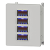 A fiberglass PMX Series enclosure with 4 displays on the closed front panel.